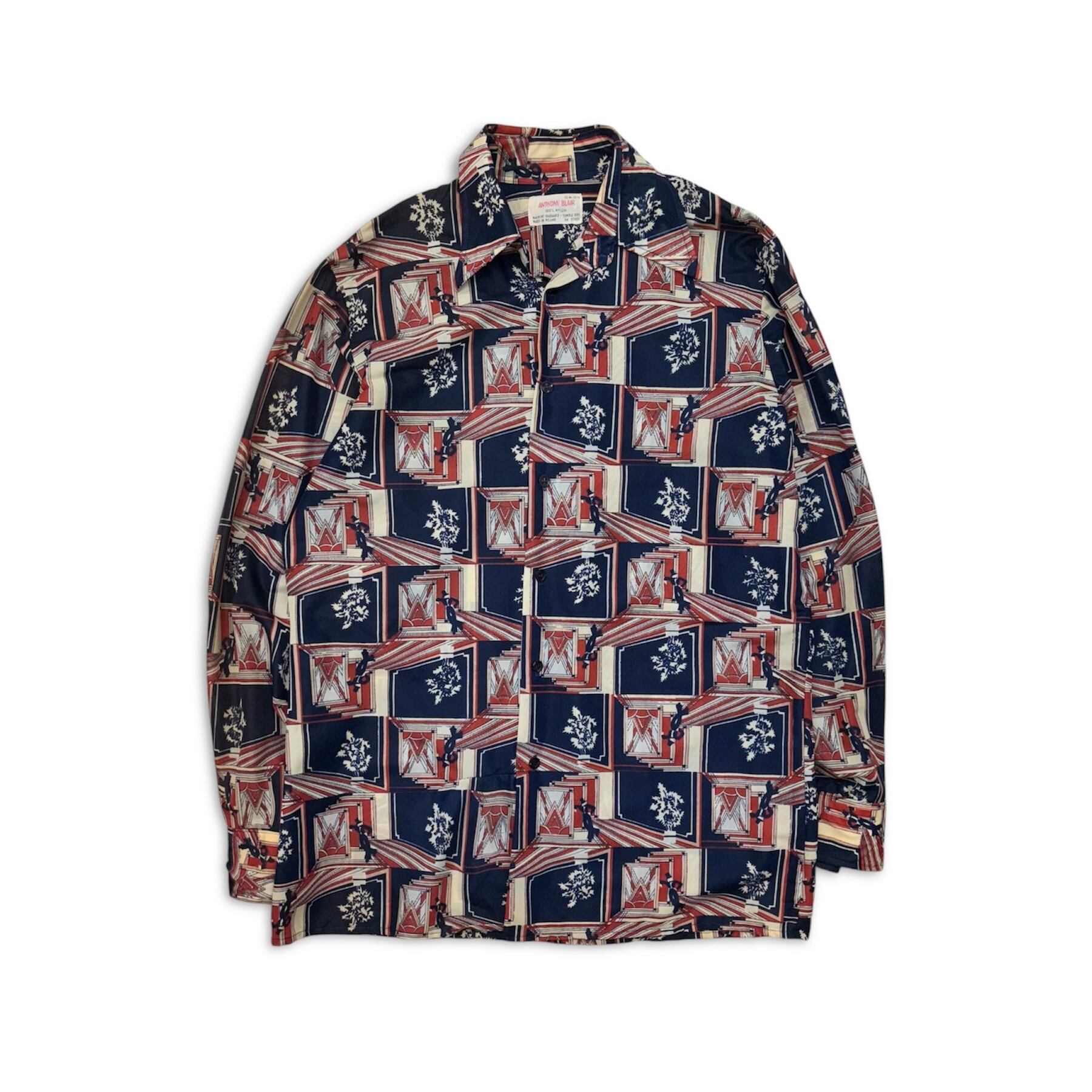 70-80s ANTHONY BLAIR NYLON SHIRT ナイロンシャツ 総柄