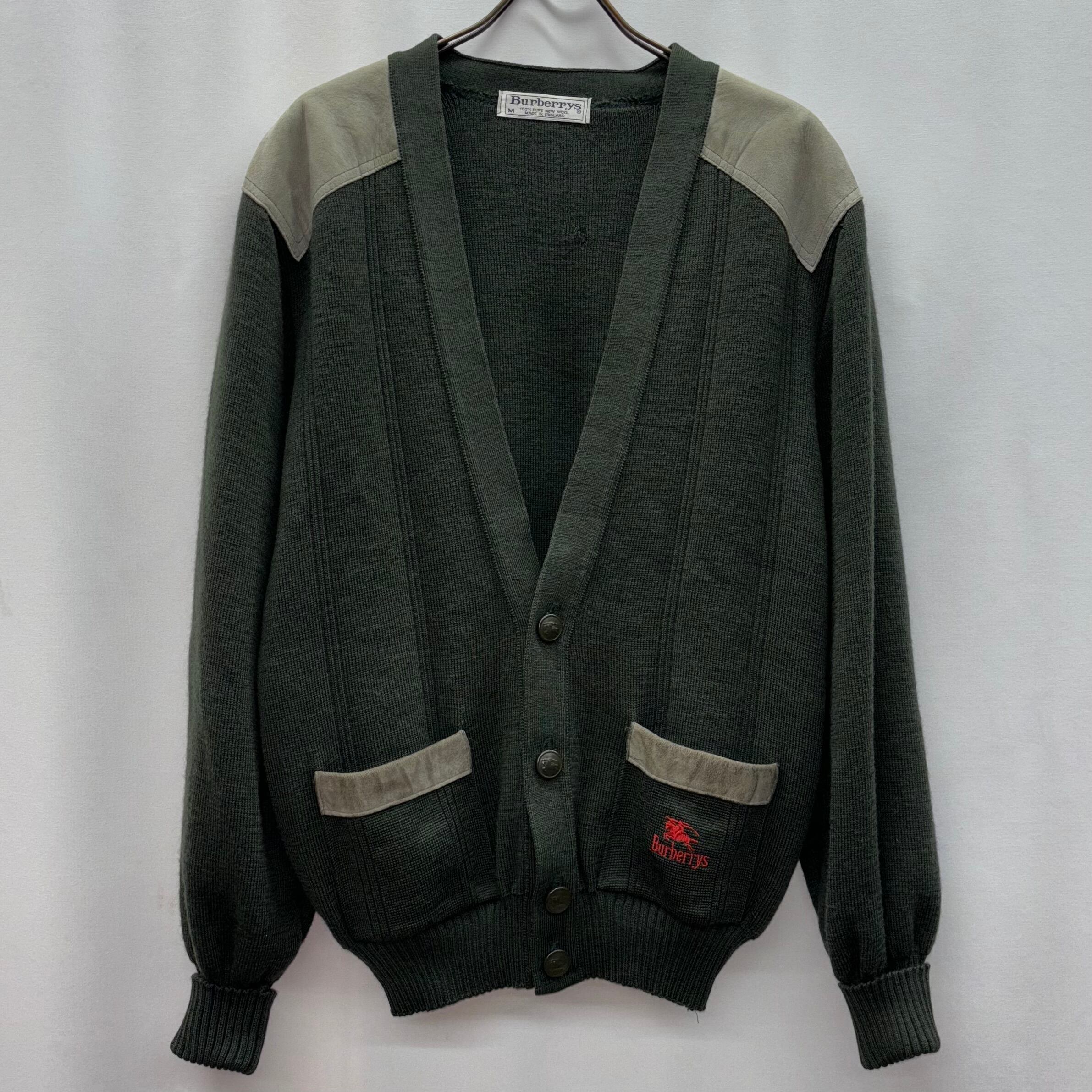 80s burberrys knit cardigan バーバリー カーディガン レザー コマンドセーター burberry