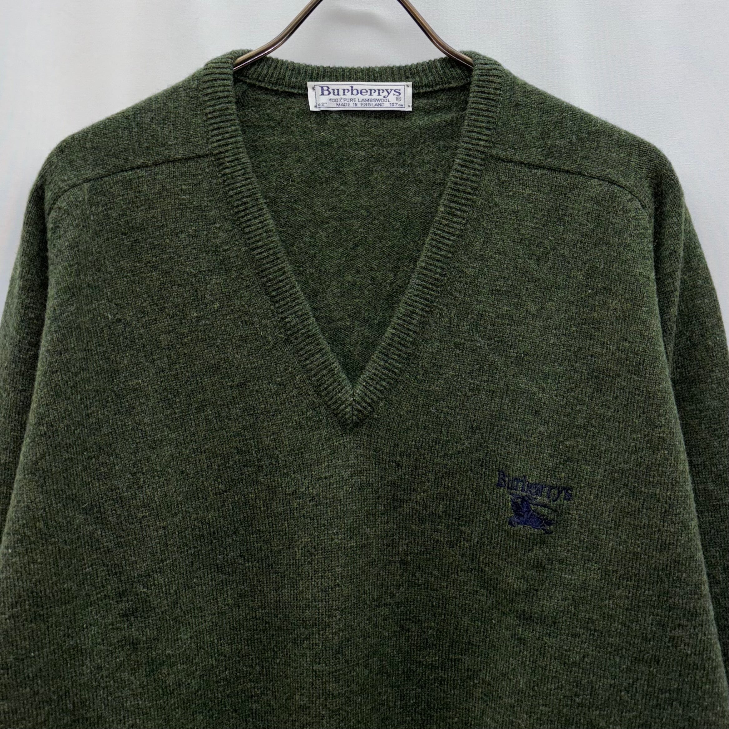 90s Burberrys knit バーバリー ニット/セーター 緑 Vネック