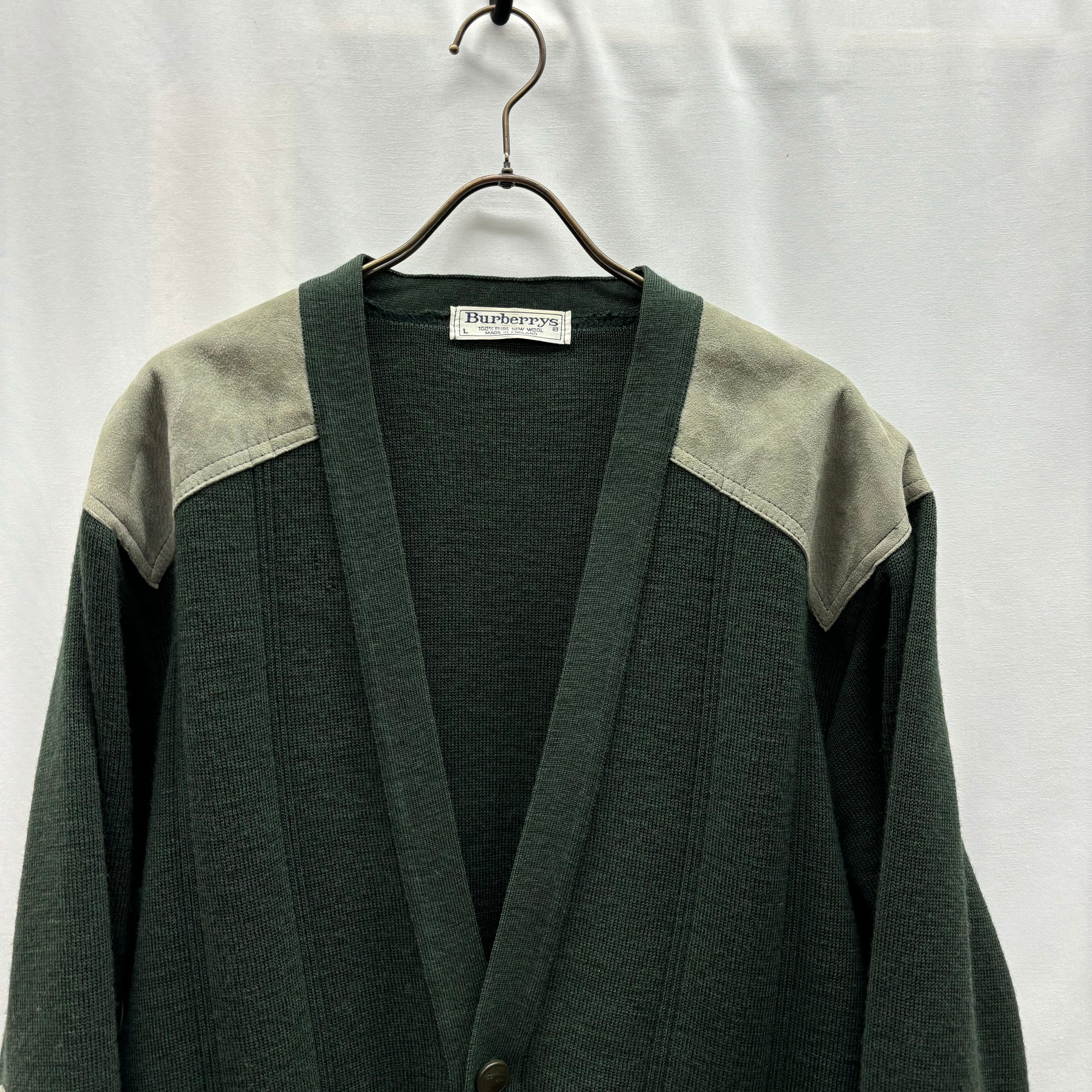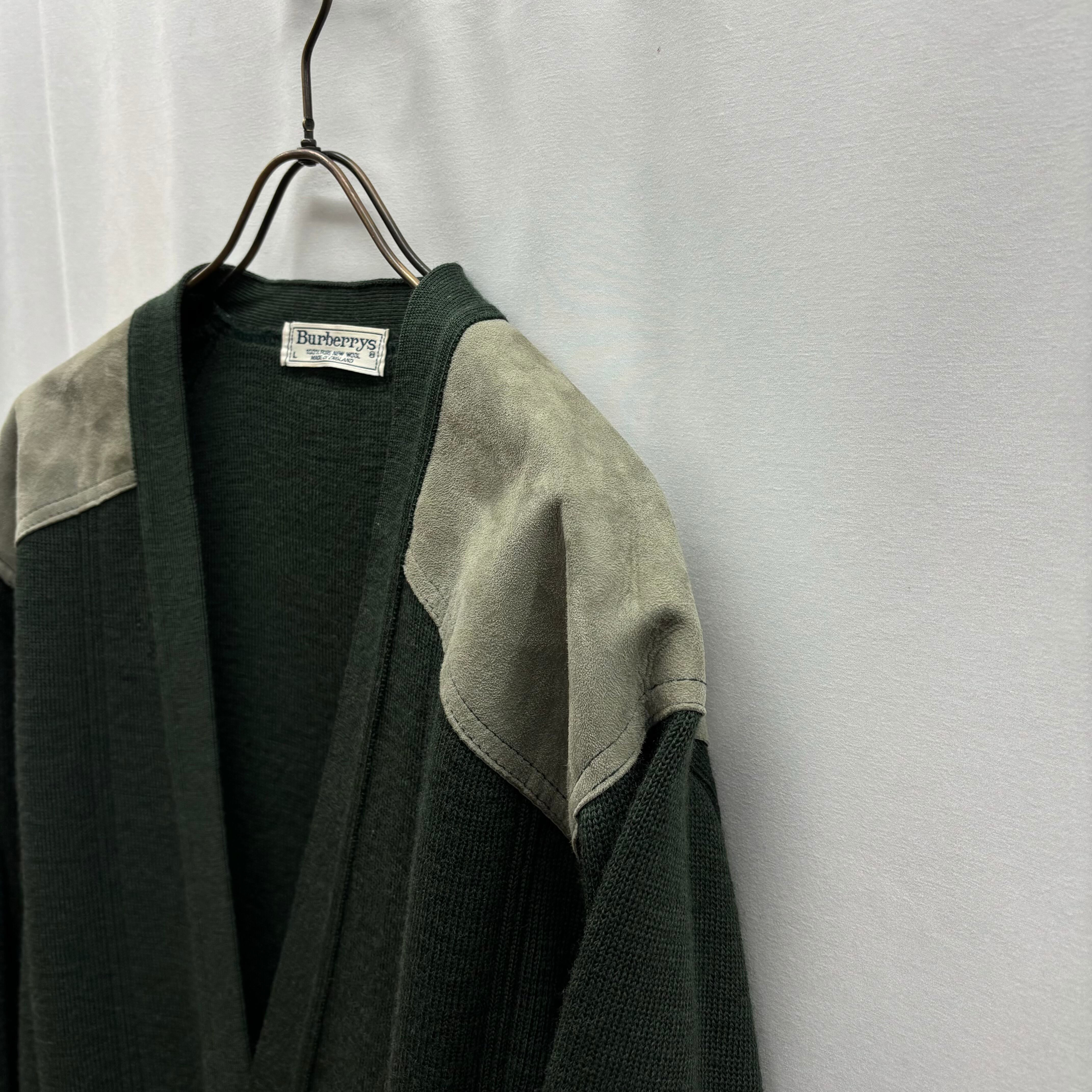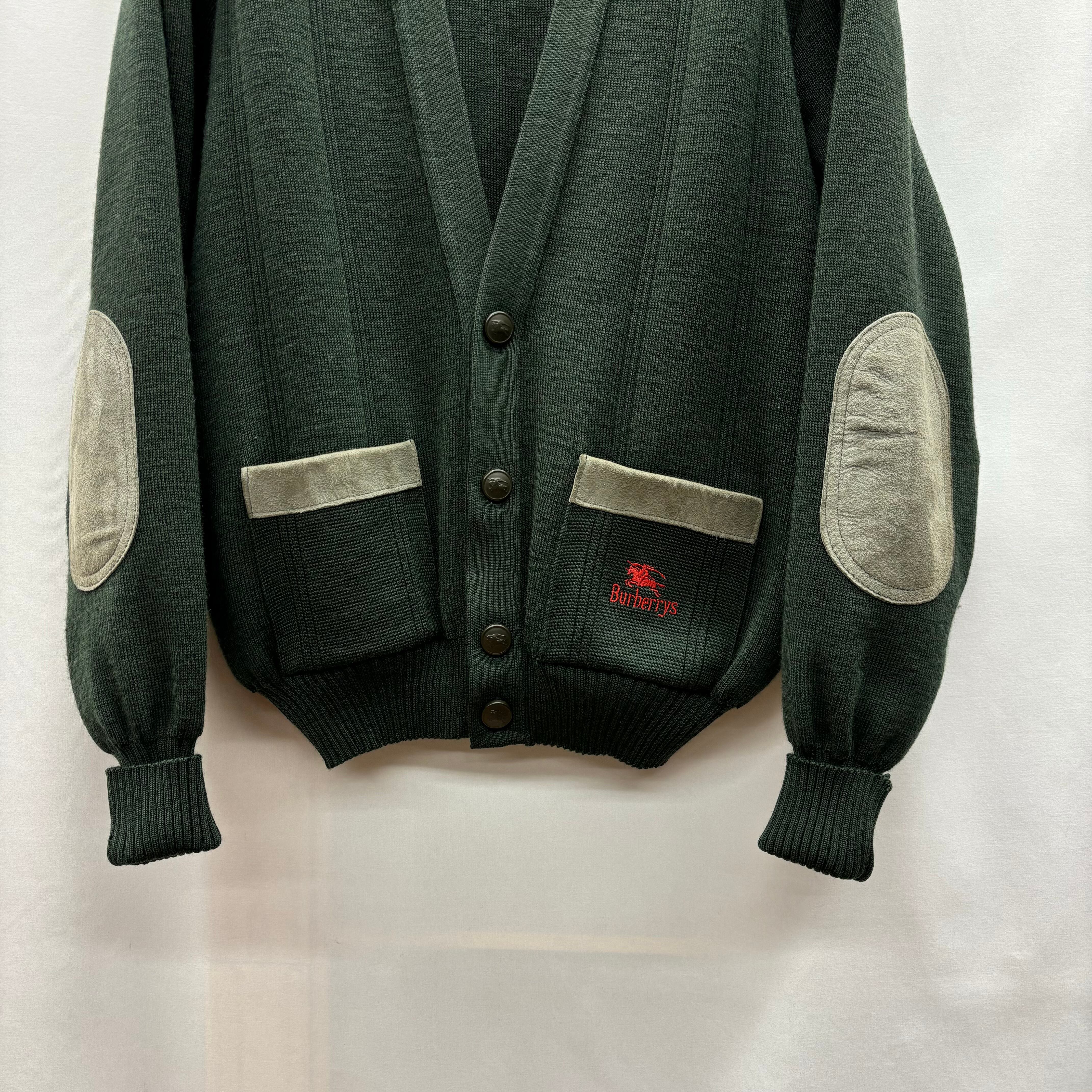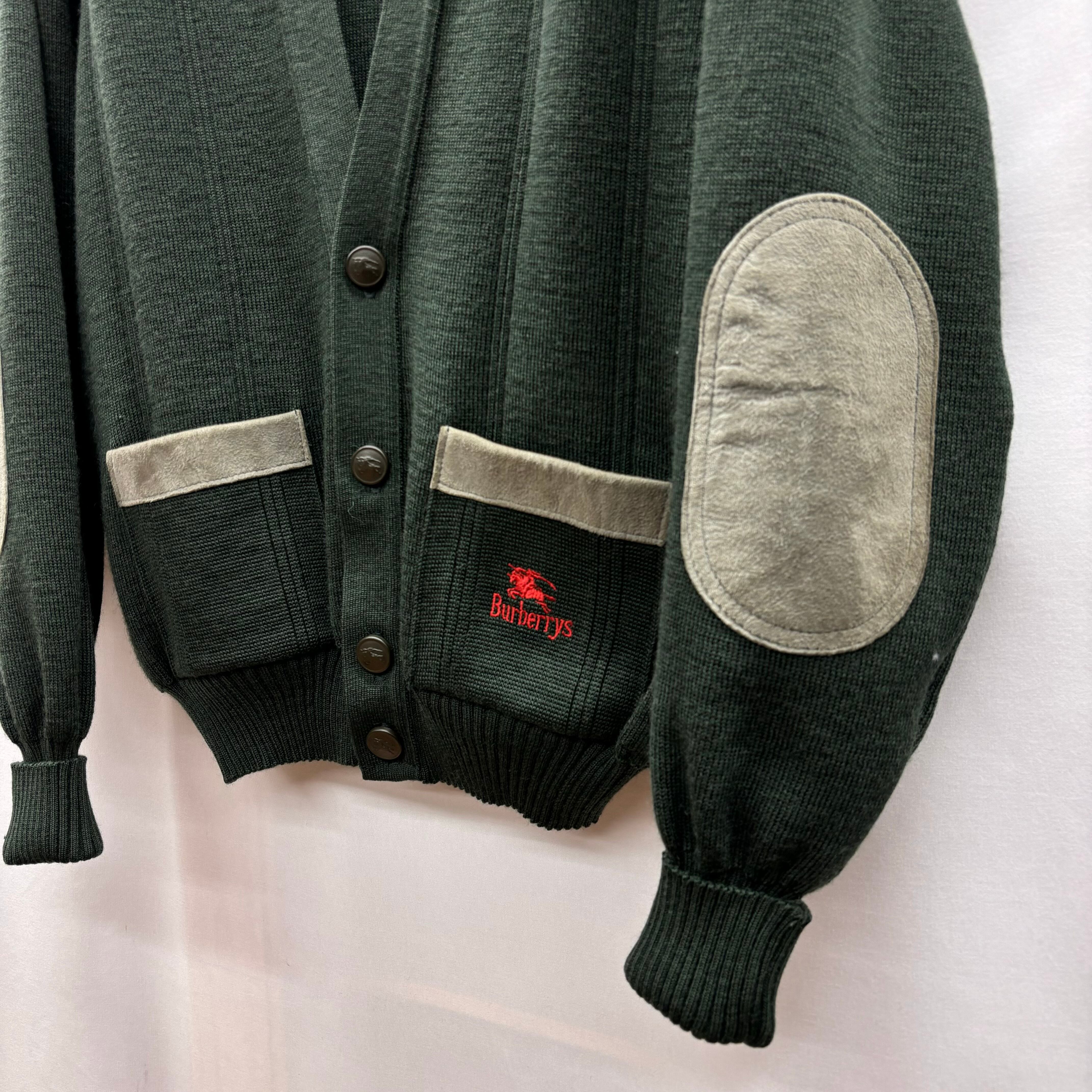 80s burberrys knit cardigan バーバリー カーディガン レザー コマンドセーター burberry