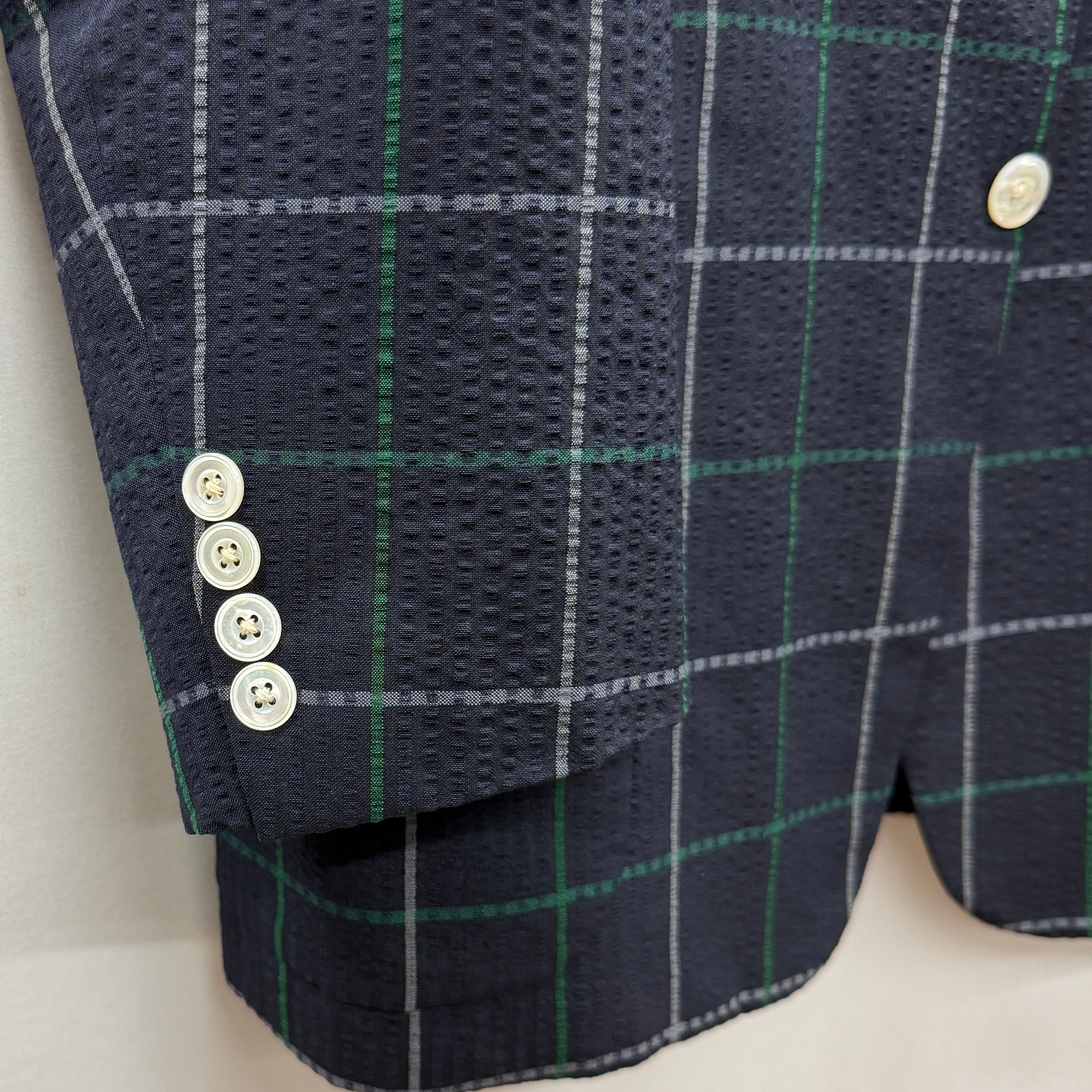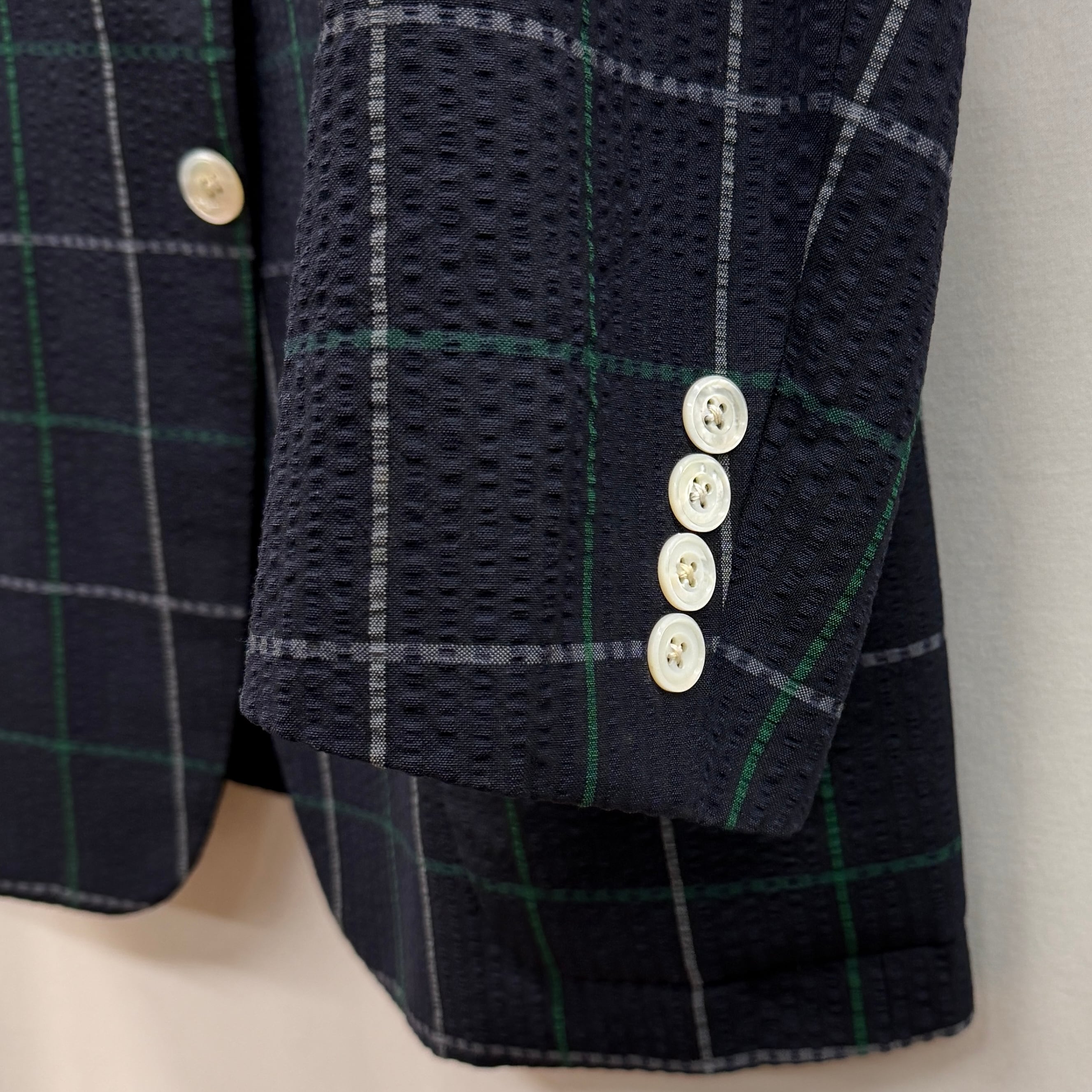 シアサッカー生地のテーラードジャケットです。