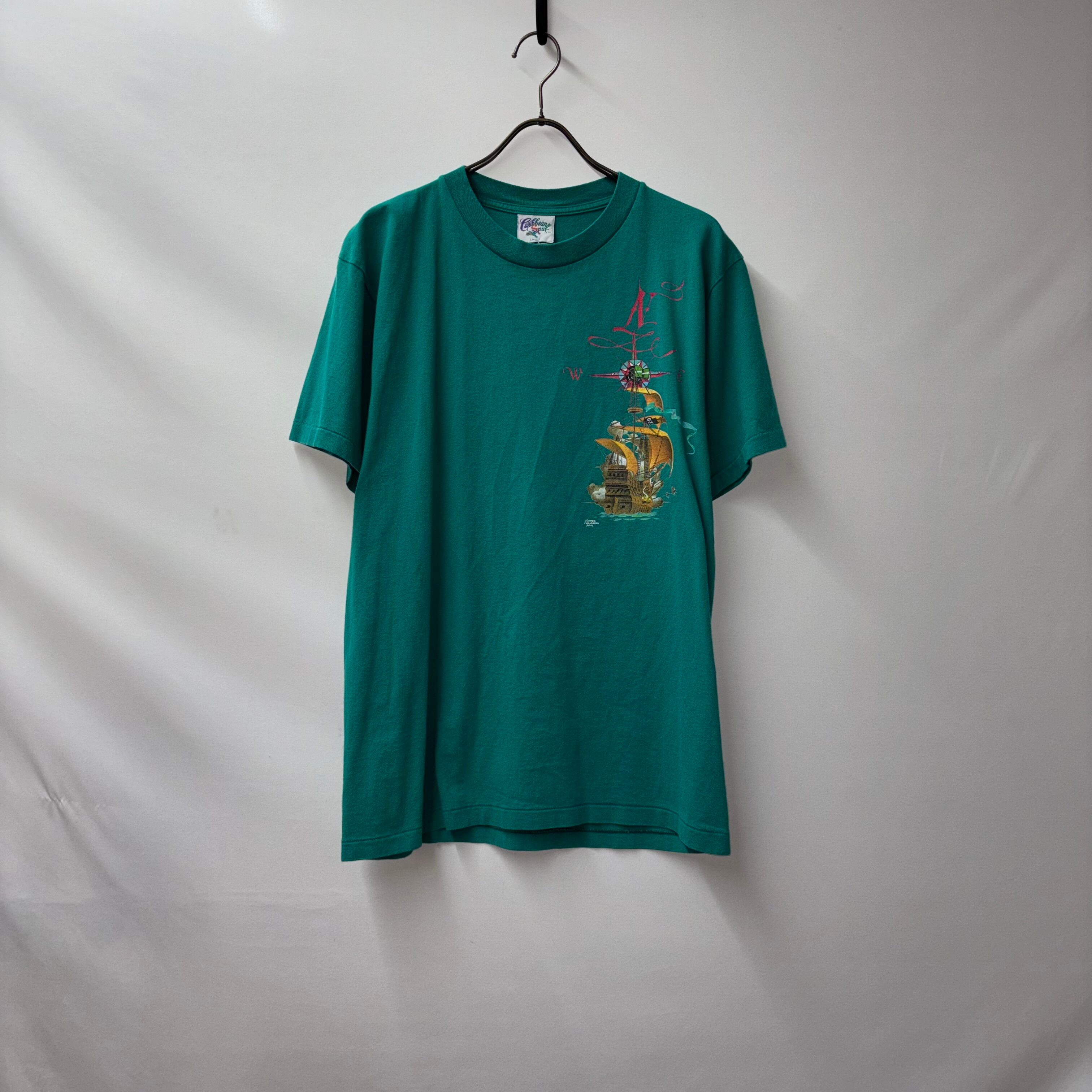 80s vintage Tee Tシャツ USA製 シングルステッチ カリブ 緑